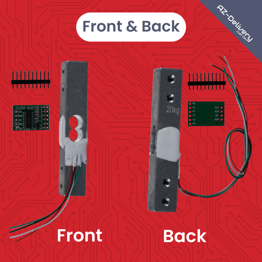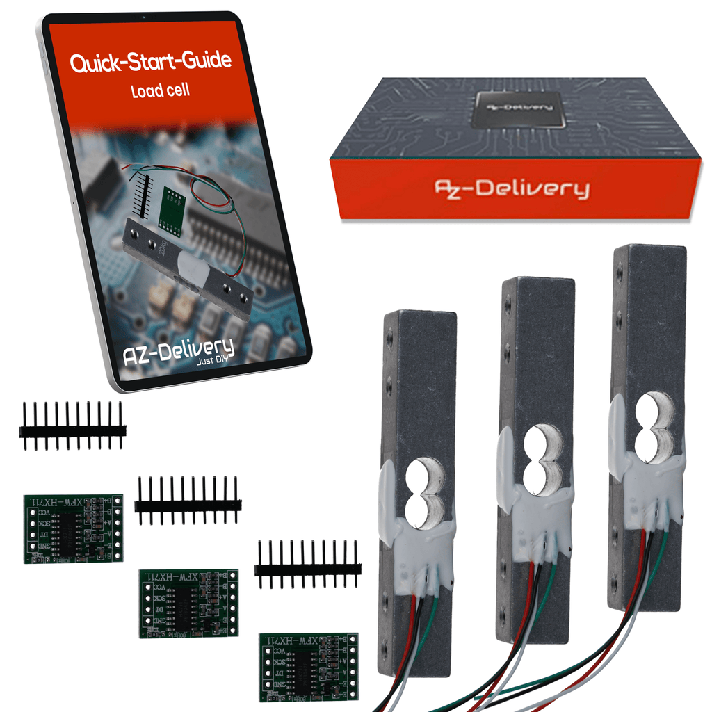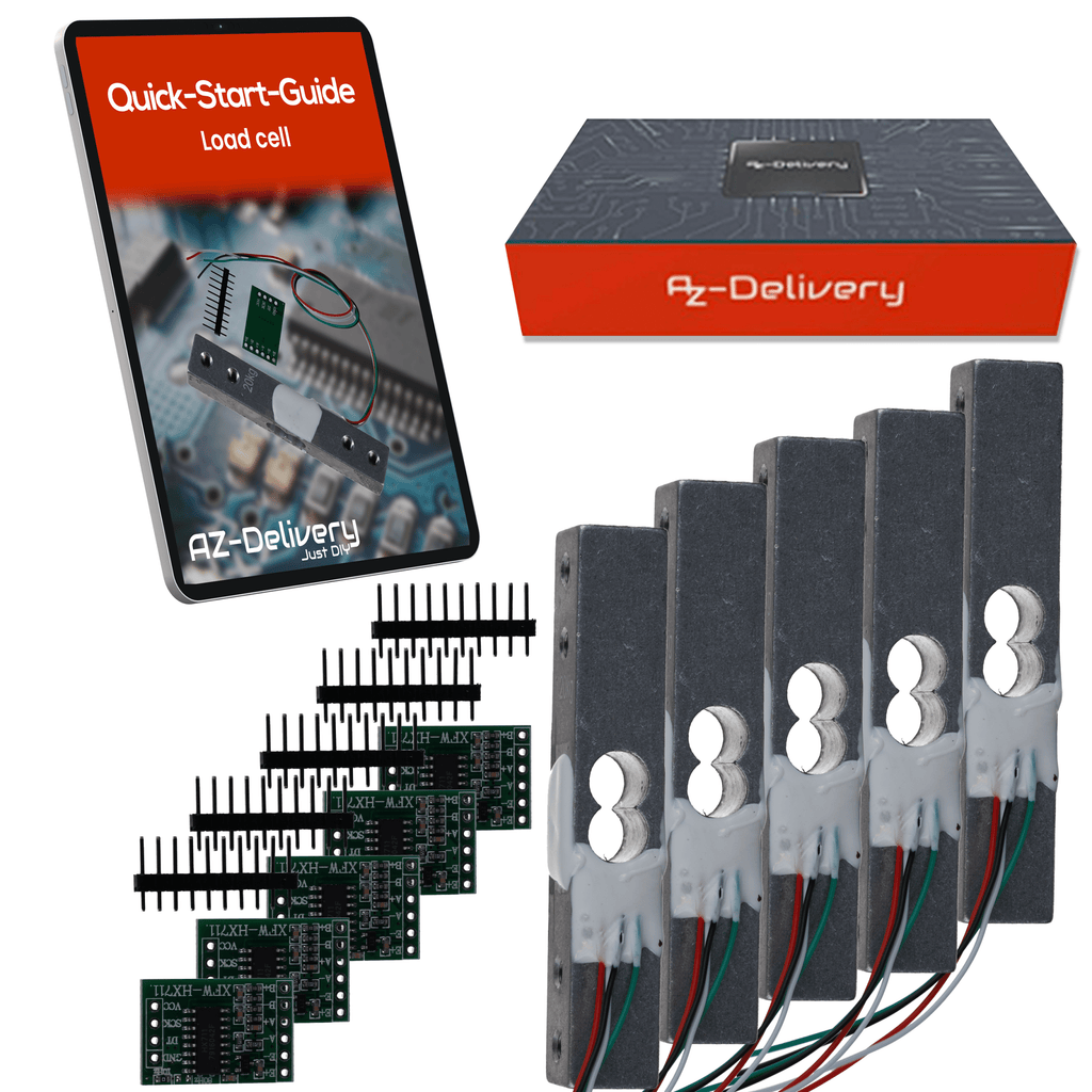 Con el AZ-Delivery Con el juego de células de carga con HX711, puedes convertir tu proyecto de microcontrolador en una balanza digital precisa o un dispositivo de medición de fuerza. La robusta célula de carga de aluminio de 20 kg reacciona a las deformaciones más pequeñas, que son amplificadas por el HX711 ADC con una resolución de 24 bits y convertidas en valores digitales, compatibles con Arduino, Raspberry Pi y similares.