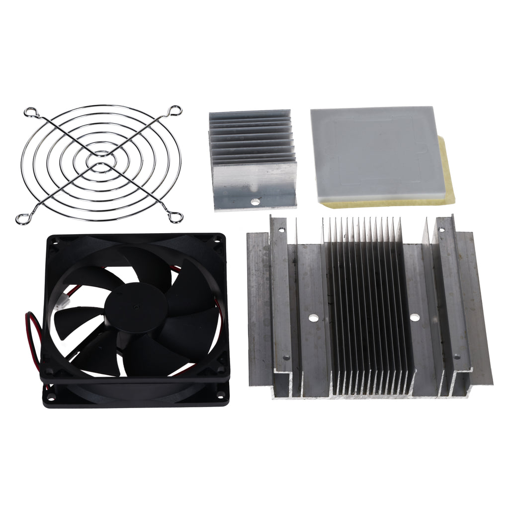 Das Set enthält einen großen Kühlkörper für die heiße Seite und einen kleinen Kühlkörper für die kalte Seite, um die Wärme effizient abzuleiten. Zusätzlich sorgt der mitgelieferte 12V-Lüfter mit Schutzgitter für eine verbesserte Luftzirkulation, was die Kühlleistung des gesamten Systems optimiert.